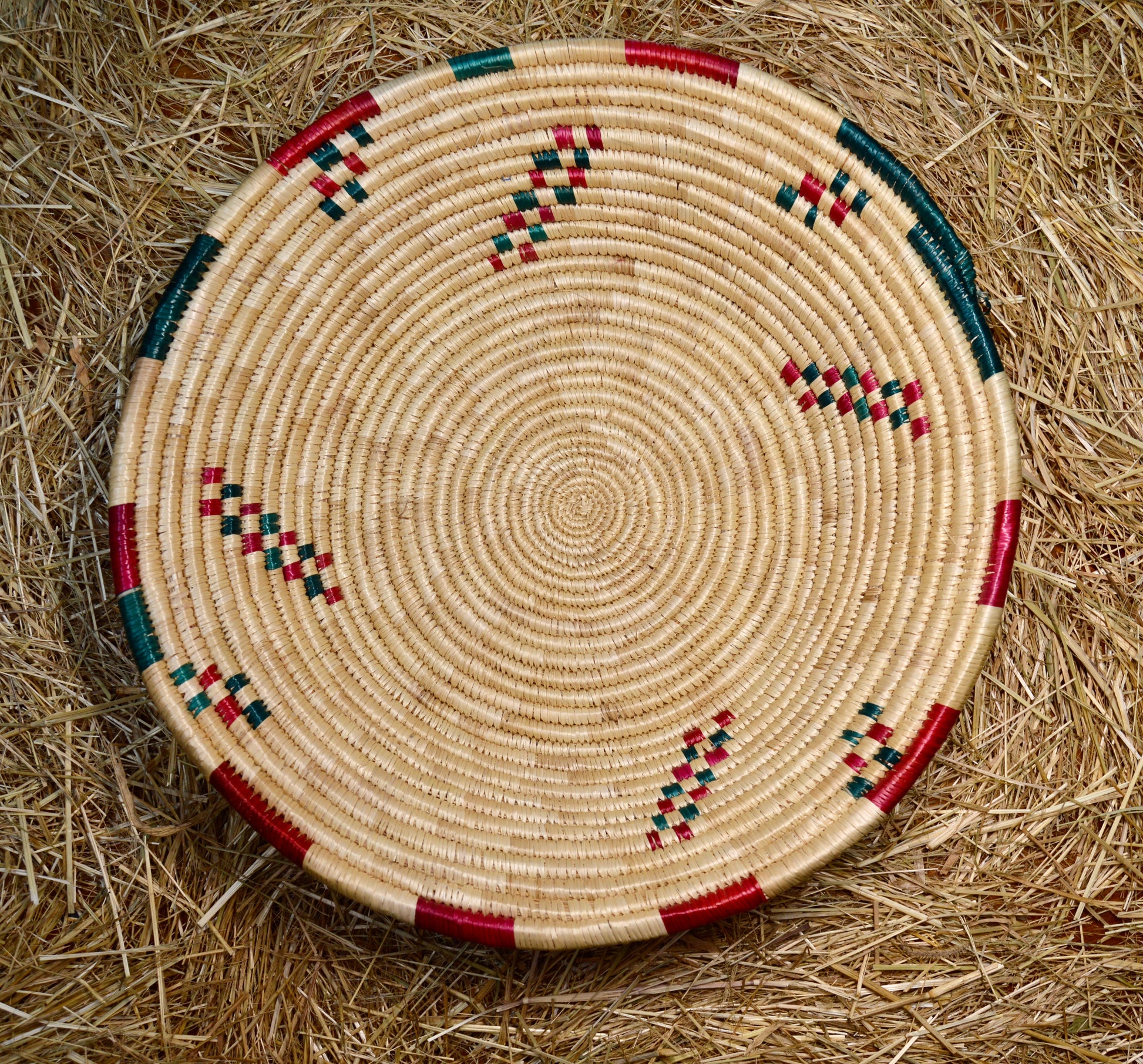 - Cesta artesanal de tamaño 31 cm de diámetro y 8 cm de altura.